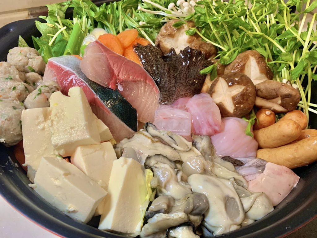 贅沢鍋とは、スーパーで牡蠣やエビ、ブリだったり魚のアラ、そしてアンコウやあん肝にホタテに豚肉、具沢山の鍋です♫
