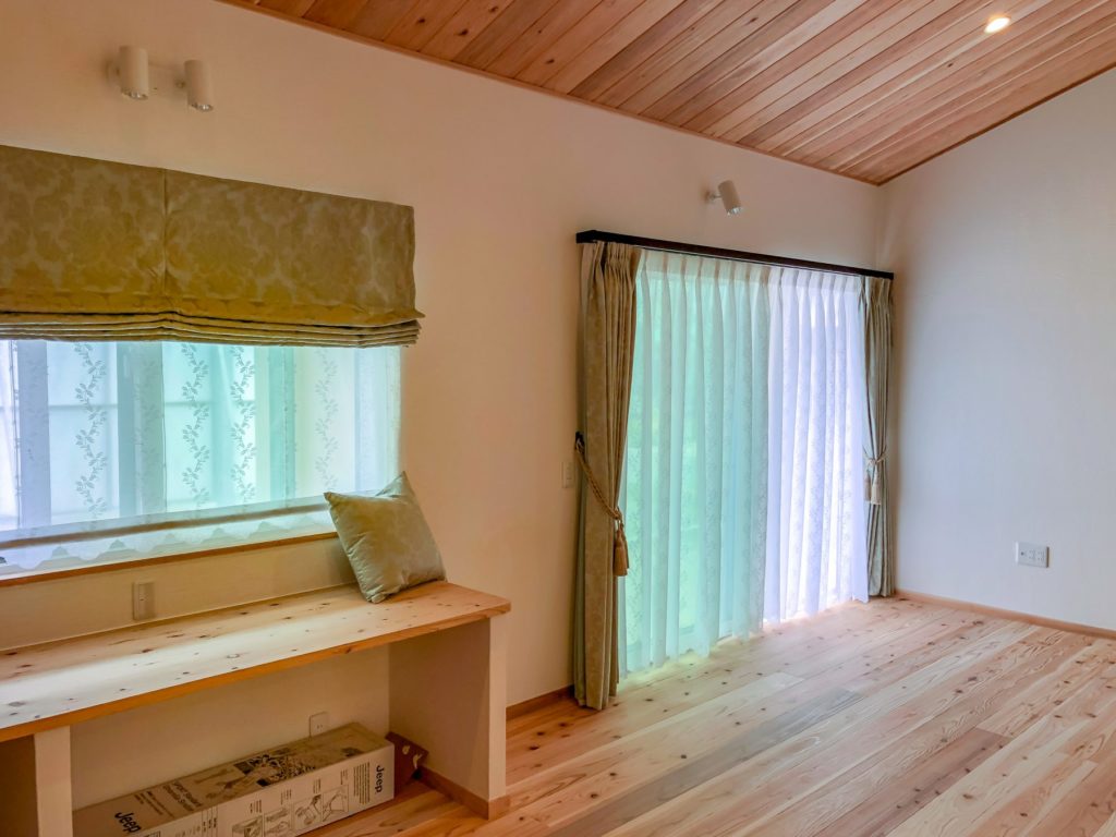 新築にお取り付けさせて頂きました。 壁紙が和紙調だったり、作り付けのベンチが畳だったりと、和テイストなリビングですが、、、 ガチガチの和にはしたくない! 窓周りはスッキリさせたい! と言うことだったので、腰窓には、FUGAの調光ロールスクリーン... -