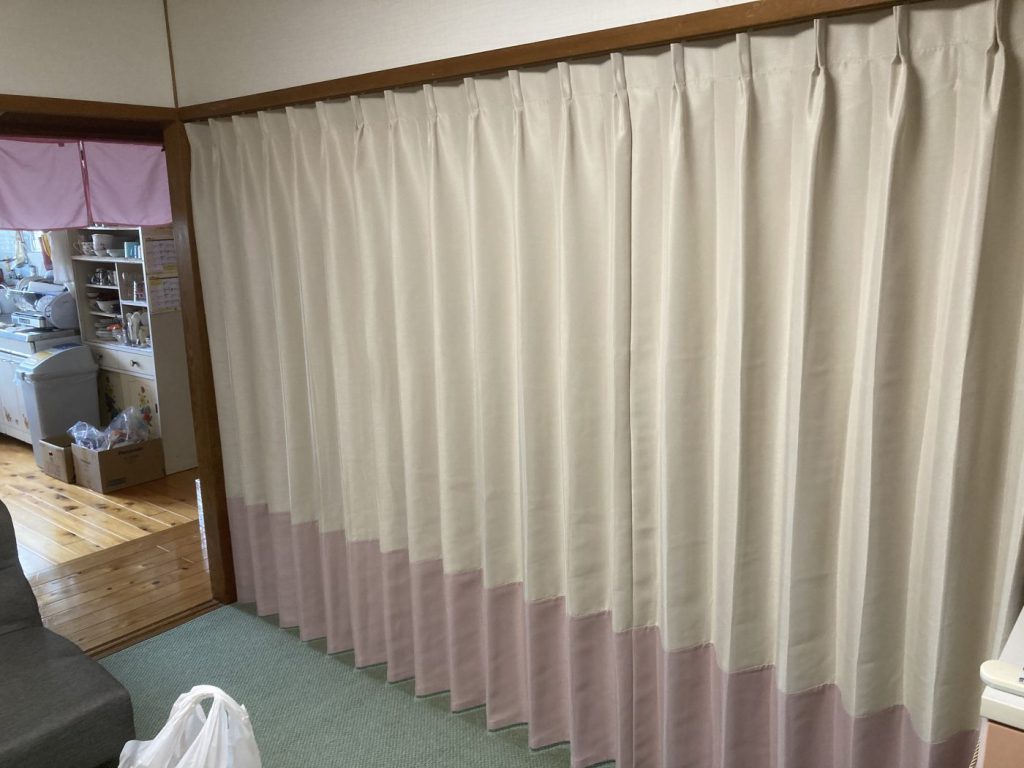 今日は間仕切りカーテンを紹介します。 元々は襖だったところにカーテンを取り付けました。 2倍ヒダの方が綺麗なのですが、たたみ代が大きくなってしまうので こんなところは1.5倍ヒダがおすすめです。(たたみ代が大きくなると開口が狭くなるため) ... -
